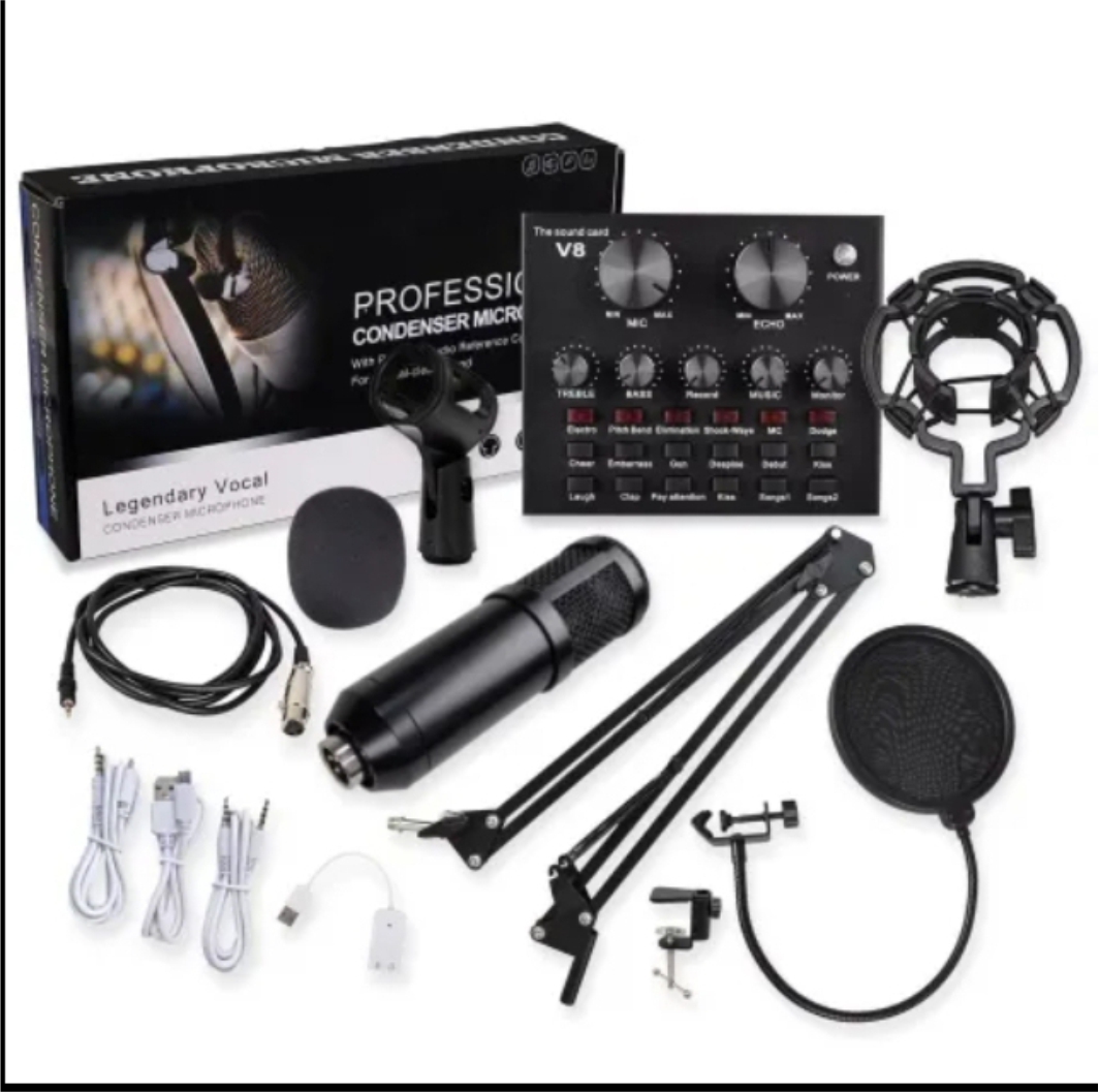A studio microphone paired with a sound card enables high-quality audio recording and broadcasting by converting analog sound into digital data for PCs, smartphones, and tablets. These setups are ideal for podcasting, music production, live streaming, voice-over work, and gaming, offering features like noise reduction, clear audio capture, and compatibility with popular software for detailed control over sound quality.